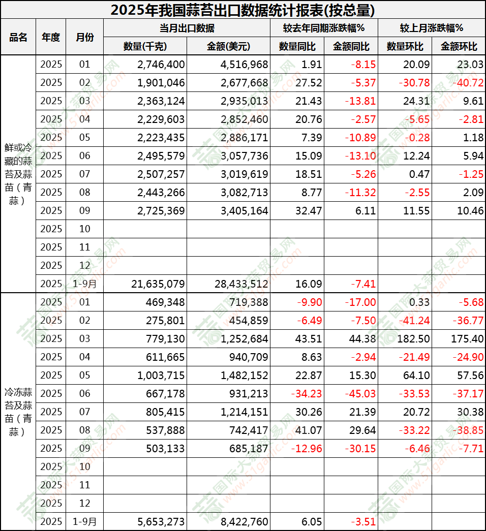 2025年9月蒜苔出口數(shù)據(jù)(按總量)