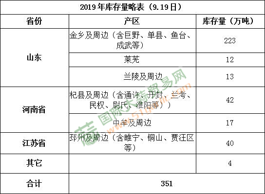 2019年冷庫大蒜庫存統(tǒng)計(jì)